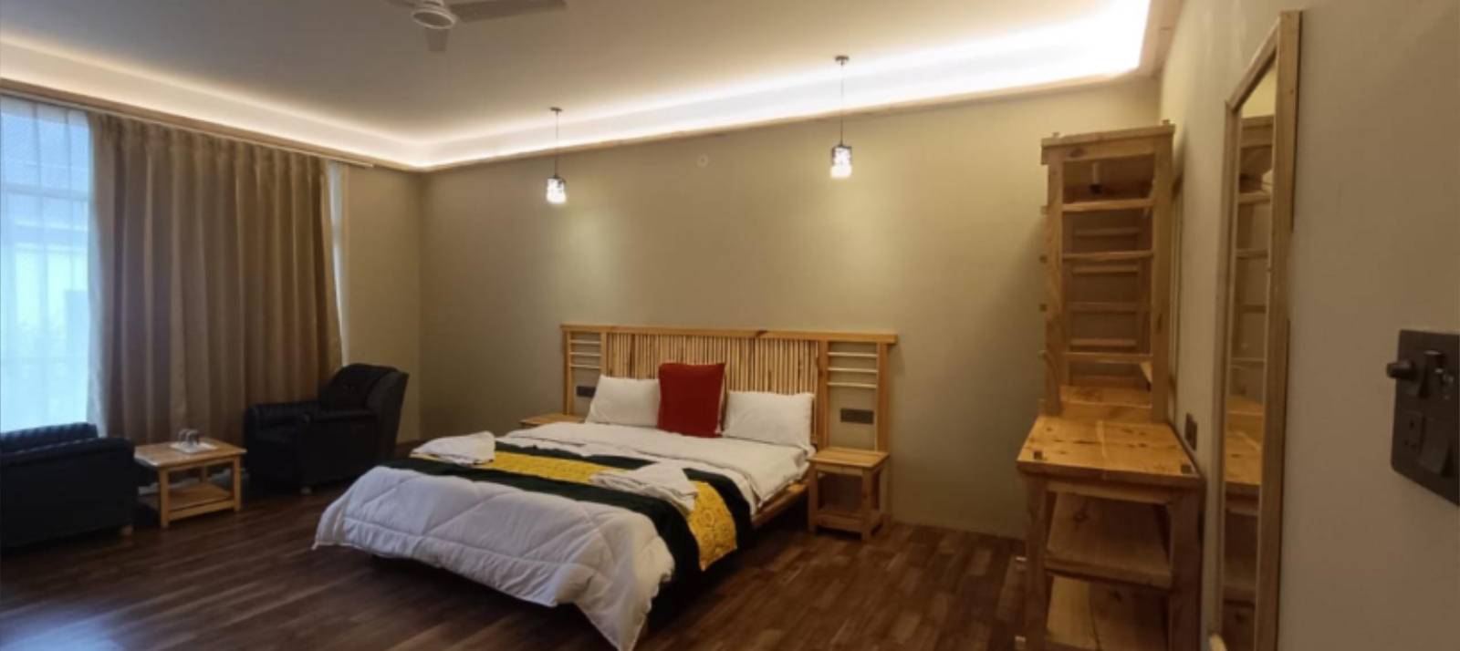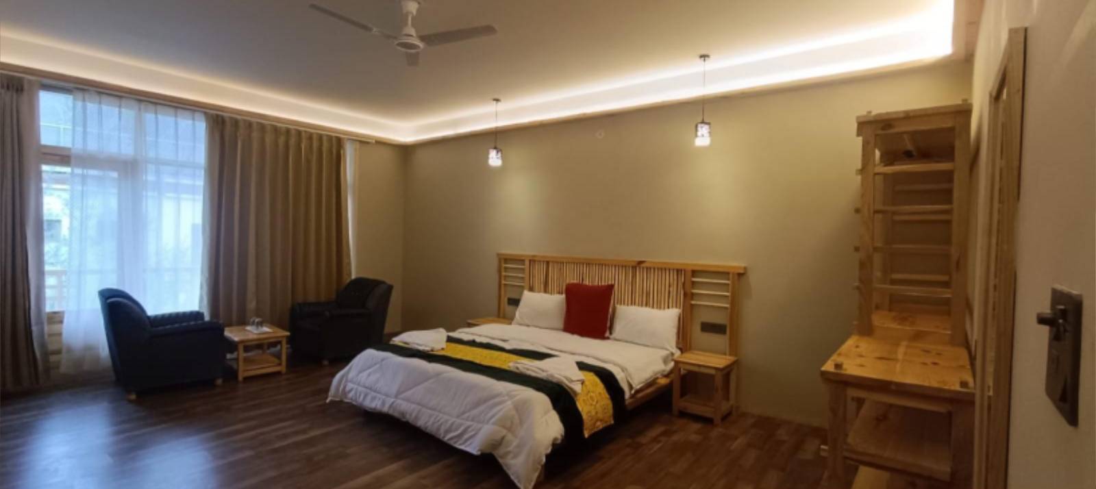 The Deluxe Room at The Lha-Ri Nubra offers an elevated experience of luxury and comfort, featuring spacious interiors that combine modern elegance with traditional Ladakhi touches. The room is designed with plush bedding, premium furnishings, and large windows that open up to stunning views of the Nubra Valley's mountains and landscapes. Guests can enjoy added amenities, such as a seating area, upgraded bathroom facilities, and enhanced décor, creating an inviting atmosphere for relaxation. Perfect for travelers seeking a refined yet cozy retreat, the Deluxe Room ensures a memorable and tranquil stay in the heart of Ladakh.
